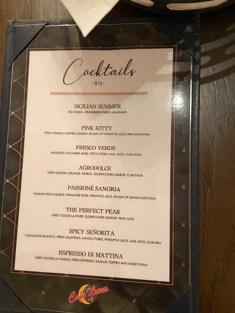 Cafe Luna Menu (2025 Update)